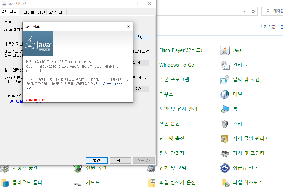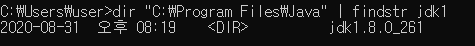 제 데스크탑에 설치된 자바 버전은 1.8.0_261 입니다
