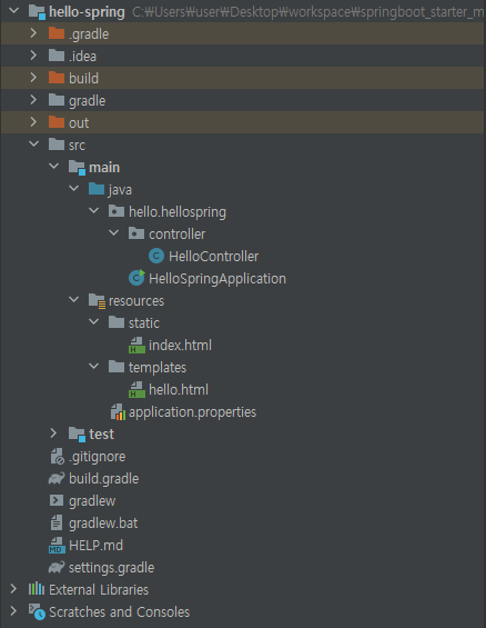 따라서 별다른 설정없이 정적컨텐츠를 만들때는 resources 하위 static 폴더 안에 만들어주면된다