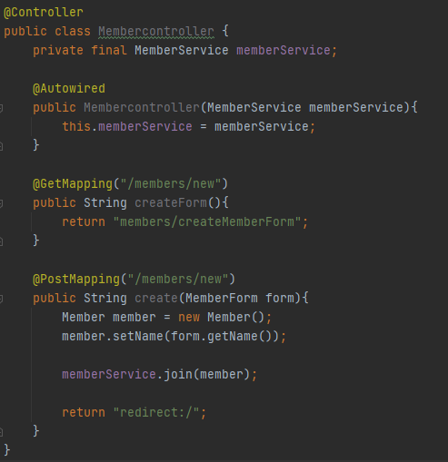 출처 : 인프런 강의 중 스프링 입문 - 코드로 배우는 스프링 부트, 웹 MVC, DB 접근 기술