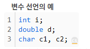 (변수의 데이터 타입과 변수 이름으로 구성하여 선언한다.)