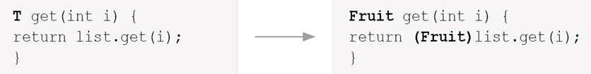 ② 제네릭 타입을 제거한 후에 타입이 일치하지 않으면, 형 변환을 추가한다.