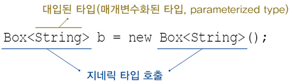 아래와 같이 타입 매개변수에 타입을 지정하는 것을 "제네릭 타입 호출"이라 한다.