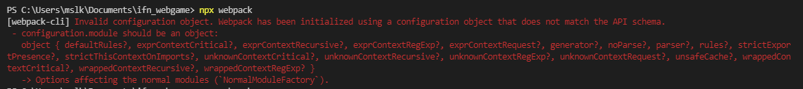 [webpack-cli] Failed to load 'C:\Users\mslk\Documents\ifn_webgame\webpack.config.js' config