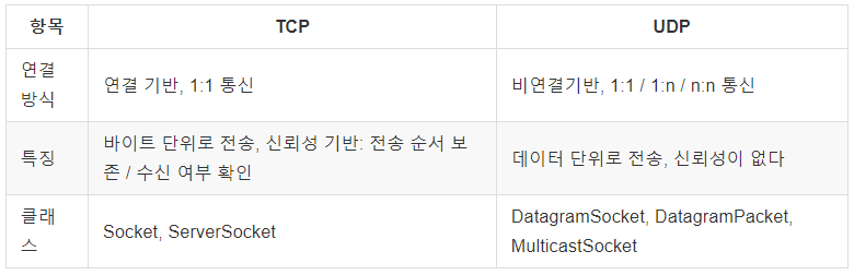 - 소켓은 입력스트림과 출력스트림을 가지고 상대방 소켓과 서로 교차연결해 데이터를 주고받는다.
