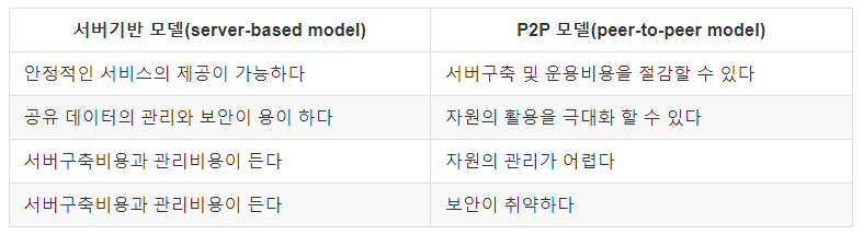 각 클라이언트가 서버역할을 동시에 수행하는 것을 P2P모델 이라고 한다