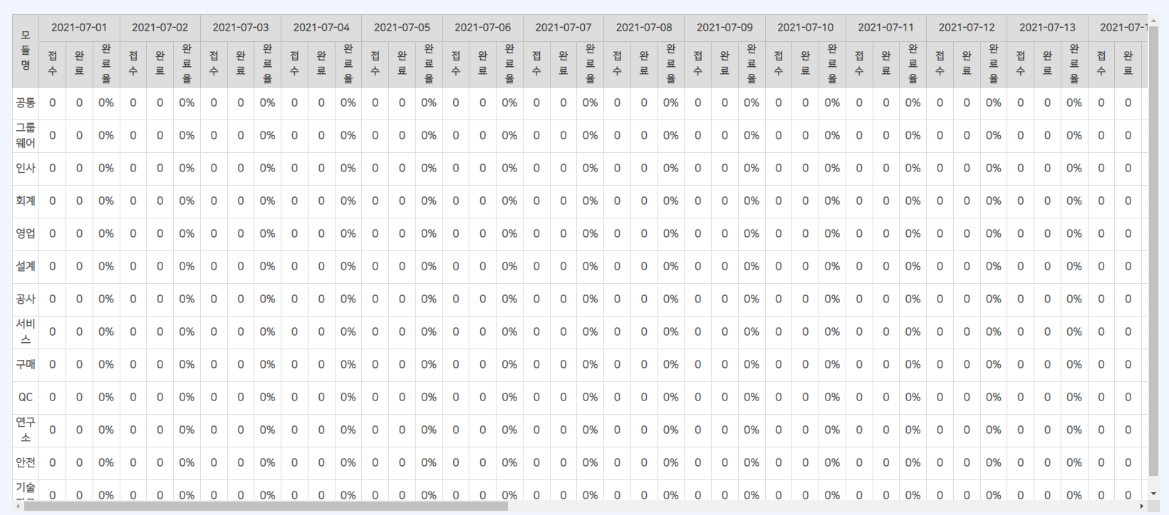 - 조회조건이 회사, 기간이었기 때문에 해당 table은 thead부분과 모듈명이 조건에 따라 다르게 적용된다.