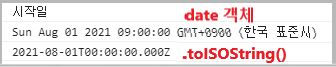 따로 ISO문자열 형식으로 변환, date형식으로 변환하는 함수를 작성하여 적용하였다.