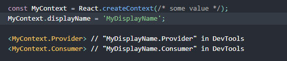 React 개발자 도구는 이 문자열을 사용해서 context를 보여준다.