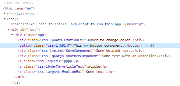 emotion도 styled-components와 마찬가지로 uniq한 class명을 자동으로 명명해주기 때문에 코드의 재사용에 편리하다.