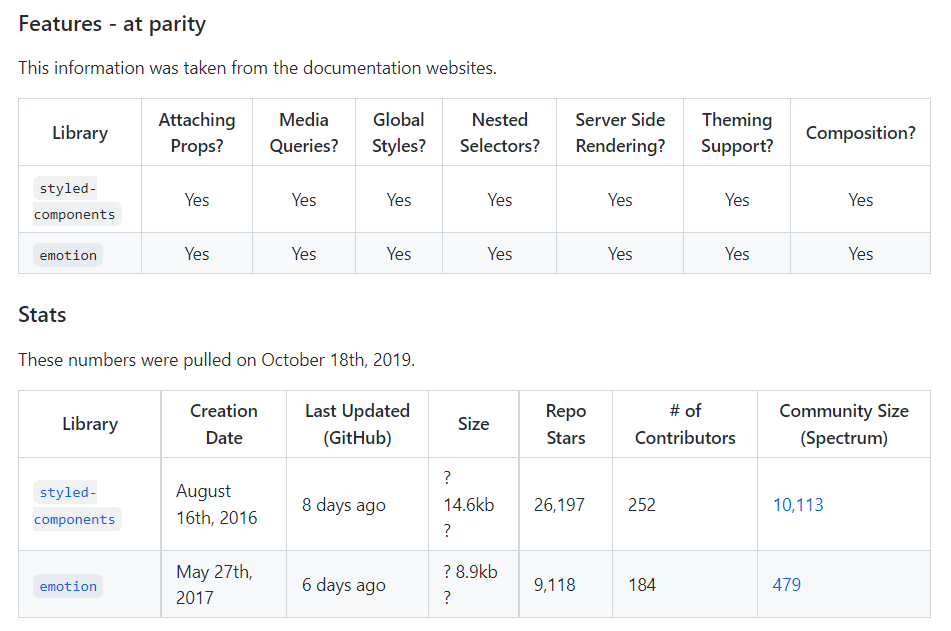 emotion과 styled-components 비교한 글에 따르면 지원하는 기능은 거의 유사하고