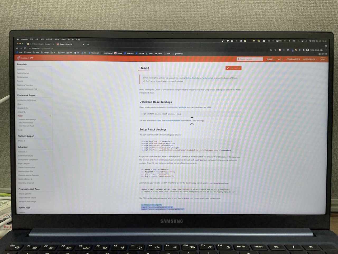 OnsenUI도 스타일링 라이브러리처럼 install 후에 모듈을 import하여 사용하면 되지만,