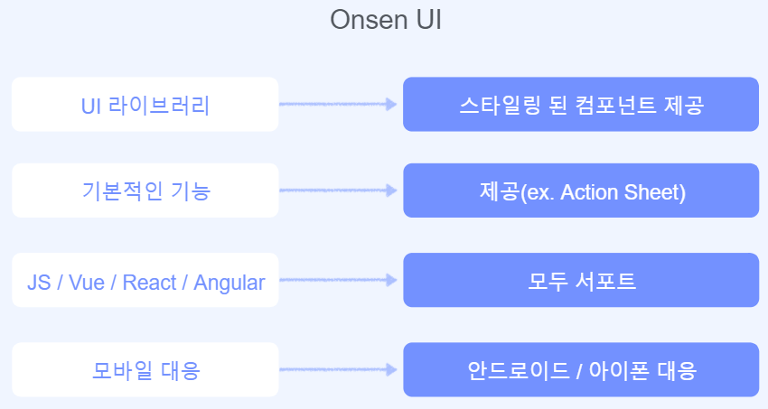 하이브리드앱과 모바일에 특화된 UI 라이브러리이다. (JS, 앵귤러, 뷰, 리액트 모두 지원한다.)
