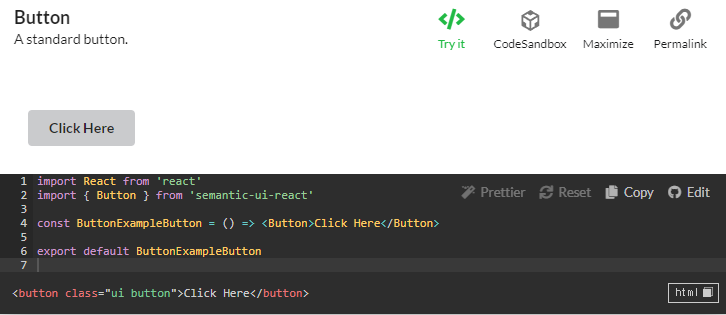 semantic ui 공식문서에서는 다른 라이브러리와 다르게 Try it으로 예제 코드를 복사하는 것 뿐 아니라